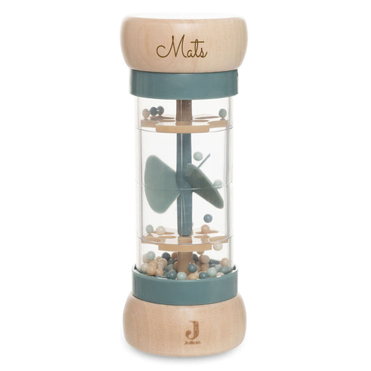 Regenmacher Rassel Baby aus Holz personalisierbar mit Name graviert Greifring für Baby Geschenk zur Geburt salbei