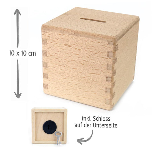 Spardose mit Namen graviert Sparwüfel zur Geburt, Hochzeit, Taufe aus Holz Ornament