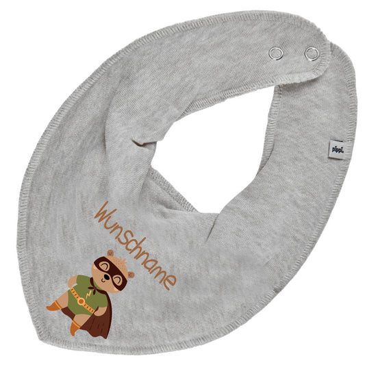 Personalisiertes HALSTUCH für Baby oder Kind aus Baumwolle in Einheitsgröße mit Motiv Superheld Bär und Wunschname bedruckt
