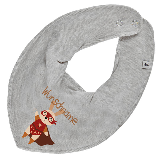 Personalisiertes HALSTUCH für Baby oder Kind aus Baumwolle in Einheitsgröße mit Motiv Superheld Hase und Wunschname bedruckt