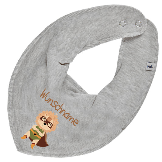 Personalisiertes HALSTUCH für Baby oder Kind aus Baumwolle in Einheitsgröße mit Motiv Superheld Löwe und Wunschname bedruckt