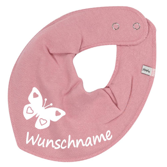 HALSTUCH Schmetterling mit Name oder Text personalisiert für Baby oder Kind aus Baumwolle in Einheitsgröße verschiedene Farben