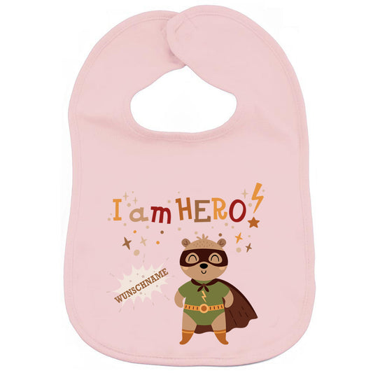 Personalisiertes Lätzchen aus 100% Baumwolle Babylätzchen doppellagiger weicher Stoff 38cm lang Motiv Hero Bär