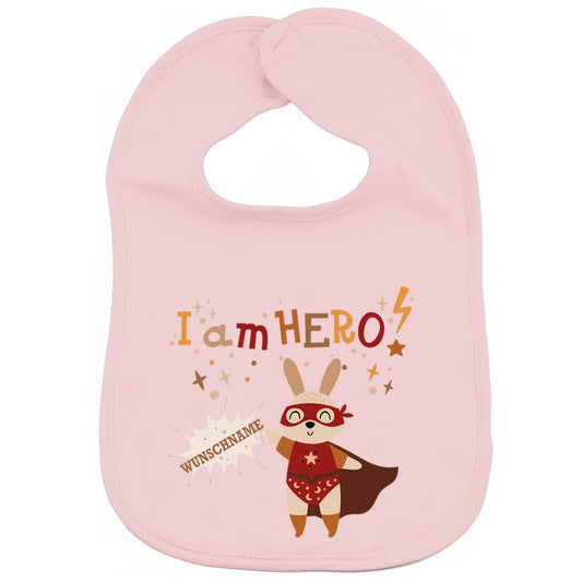 Personalisiertes Lätzchen aus 100% Baumwolle Babylätzchen doppellagiger weicher Stoff 38cm lang Motiv Hero Hase