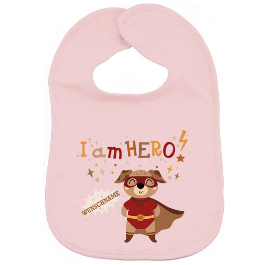 Personalisiertes Lätzchen aus 100% Baumwolle Babylätzchen doppellagiger weicher Stoff 38cm lang Motiv Hero Hund