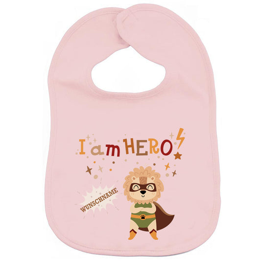 Personalisiertes Lätzchen aus 100% Baumwolle Babylätzchen doppellagiger weicher Stoff 38cm lang Motiv Hero Löwe