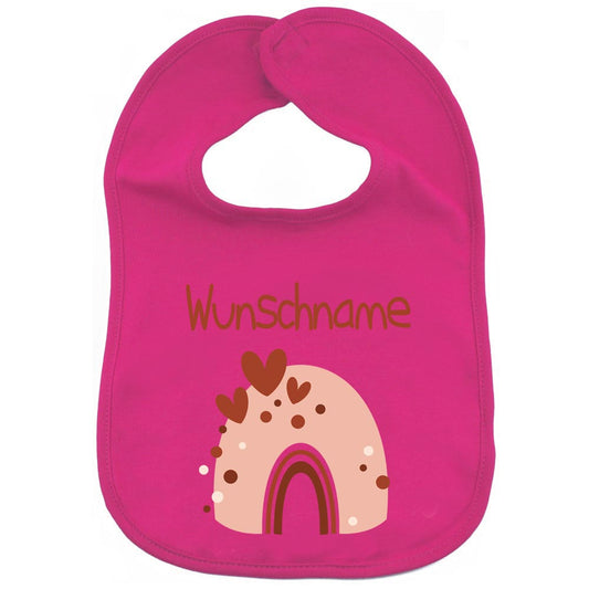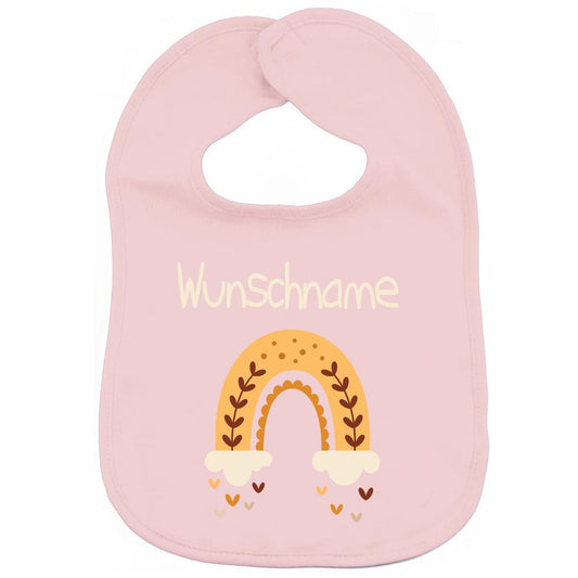 Personalisiertes Lätzchen aus 100% Baumwolle Babylätzchen doppellagiger weicher Stoff 38cm lang Motiv Regenbogen beige
