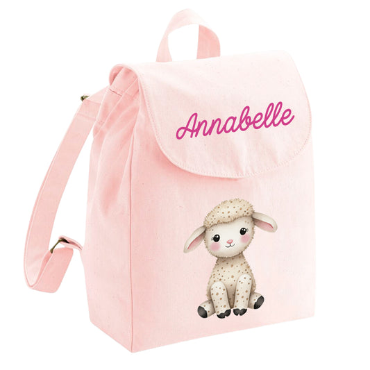 Personalisierter Rucksack aus Bio Baumwolle Kinderrucksack Name und Bauernhoftier bedruckt verschiedene Farben