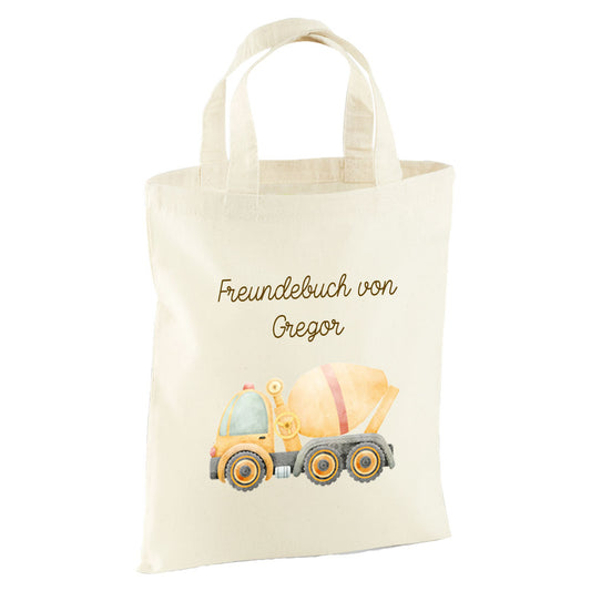 Personalisierte Freundebuch Tasche mit Namen, Baumwolle Stofftasche, Motiv Fahrzeug
