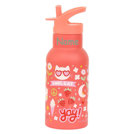 Edelstahl Trinkflasche für Kinder mit Namen graviert von Trixie ultraleicht auslaufsicher Trinkschnabel für Kinder ab 3 Jahren Katze