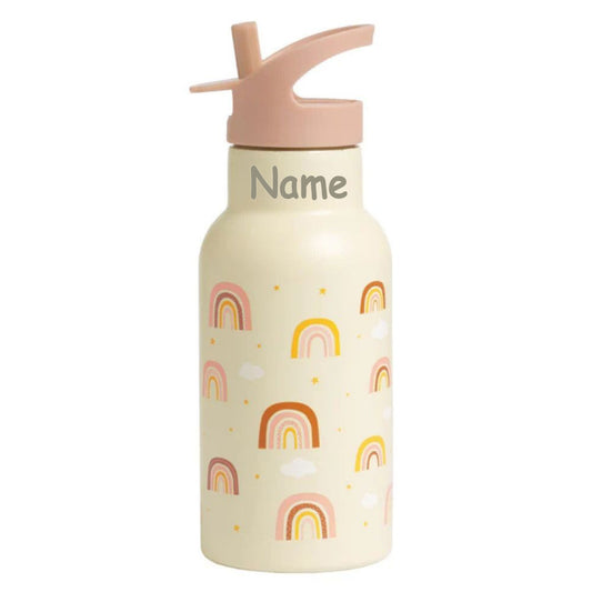 Personalisierte Edelstahl Trinkflasche für Kinder mit Namen graviert ultraleicht Trinkstrohhalm für Kinder ab 4 Jahren Regenbogen