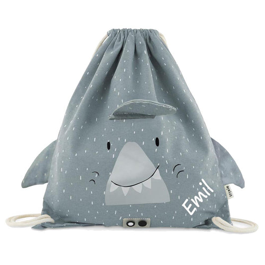 Turnbeutel mit Name personalisiert von Trixie Sportbeutel Schwimmtasche für Kinder mit Tiermotiv und Wunschnamen bedruckt Hai
