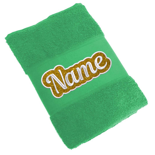 Besticktes Handtuch Badehandtuch aus 100% Baumwolle mit Glitzer und Name personalisiert Bestickt Grün