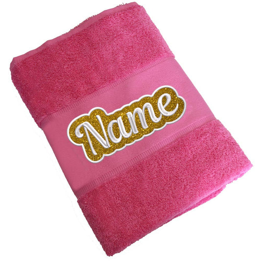 Besticktes Handtuch Badehandtuch aus 100% Baumwolle mit Glitzer und Name personalisiert Bestickt Pink