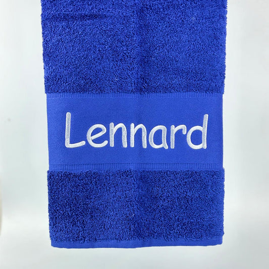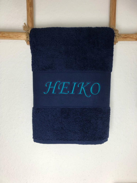 Handtuch Badetuch Badehandtuch aus 100% Baumwolle mit Namen personalisiert Bestickt Dunkelblau