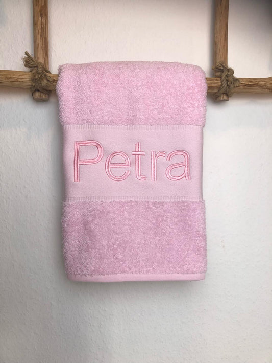 Handtuch Badetuch Badehandtuch aus 100% Baumwolle mit Namen personalisiert Bestickt Rosa
