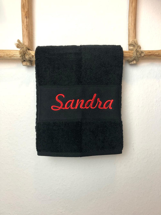 Handtuch Badetuch Badehandtuch aus 100% Baumwolle mit Namen personalisiert Bestickt Schwarz