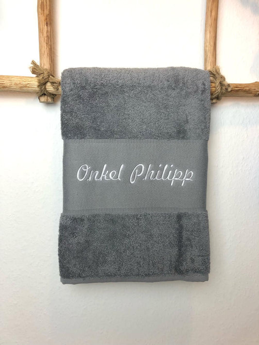 Handtuch Badetuch Badehandtuch aus 100% Baumwolle mit Namen personalisiert Bestickt Grau