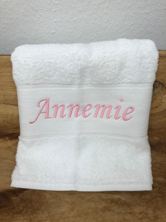 Handtuch Badetuch Badehandtuch aus 100% Baumwolle mit Namen personalisiert Bestickt Weiß