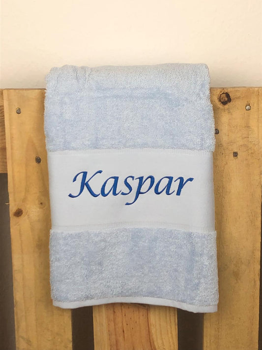 Handtuch Badetuch Badehandtuch aus 100% Baumwolle mit Namen personalisiert Bestickt Hellblau