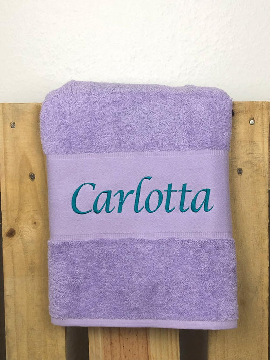 Handtuch Badetuch Badehandtuch aus 100% Baumwolle mit Namen personalisiert Bestickt Flieder