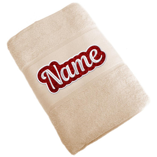 Besticktes Handtuch Badehandtuch aus 100% Baumwolle mit Glitzer und Name personalisiert Bestickt Beige