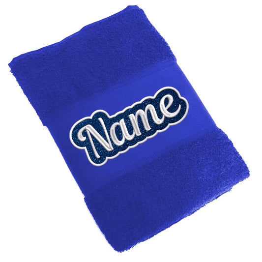 Besticktes Handtuch Badehandtuch aus 100% Baumwolle mit Glitzer und Name personalisiert Bestickt Blau