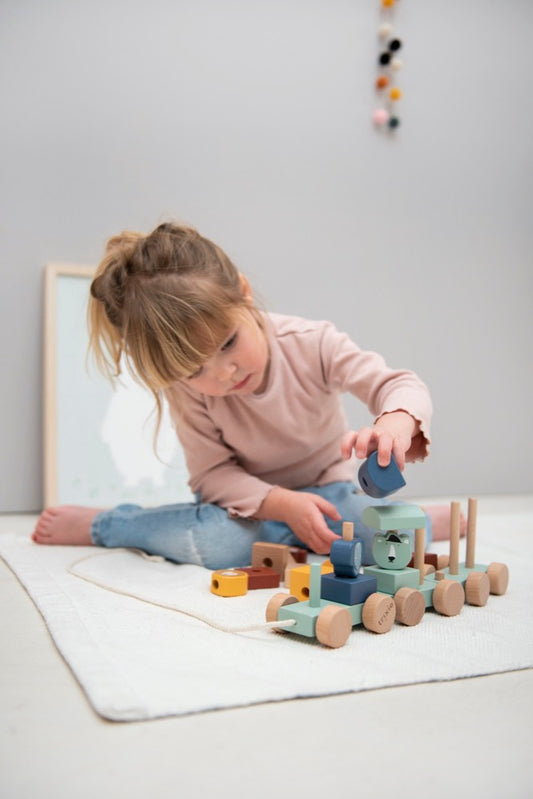 Spielzeugeisenbahn Holzzug für Kinder ab 12 Monate personalisiert mit Name und Geburtsdaten beige