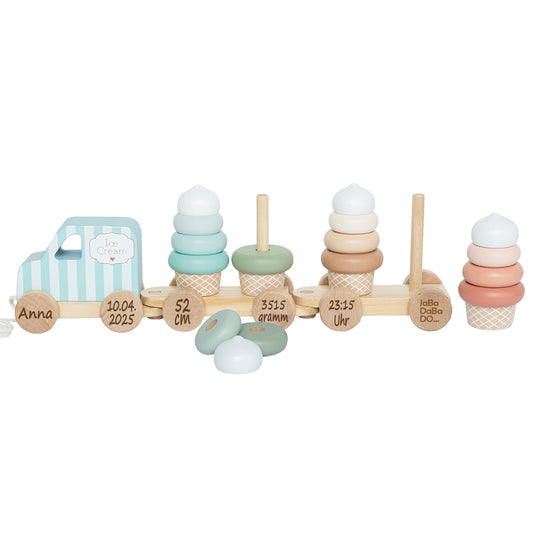 Spielzeugeisenbahn Holzzug Eiscreme für Kinder ab 18 Monate, personalisiert mit Name und Geburtsdaten Icecream EIS