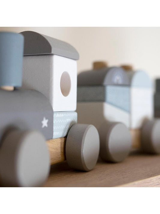 Holzzug Holz Eisenbahn blau personalisiert mit Name und Geburtsdaten Baby Geschenk mit Gravur