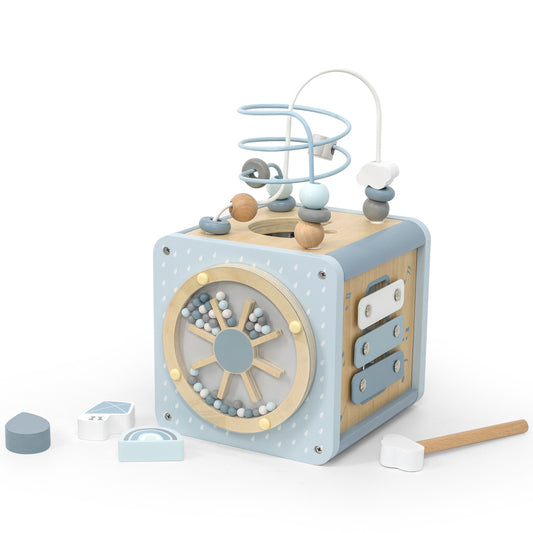 Motorikwürfel aus Holz Aktivitätswürfel für Babys, personalisiert mit Namen, ab 18 Monaten Blau
