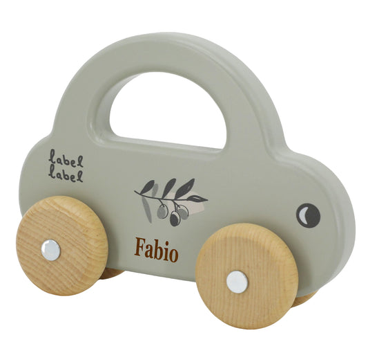 Spielzeug Auto aus Holz oliv personalisiert mit Name Baby Geschenk mit Gravur