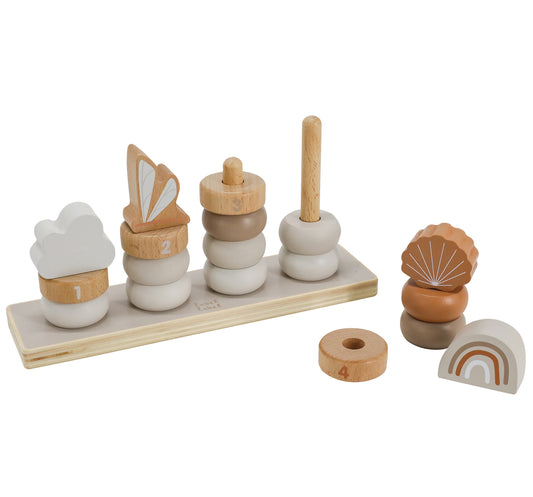 Stapelringe aus Holz beige personalisiert mit Name und Geburtsdaten Baby Geschenk mit Gravur