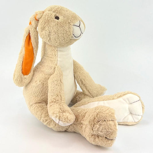 Stofftier Hase mit großen Füßchen mit Namen und Geburtsdatum personalisiert Geschenk beige orange
