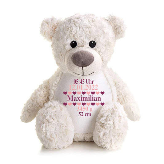 Stofftier Teddybär Creme mit Name personalisiert Kuscheltier für Kinder Flauschiges Plüschtier 40cm Motiv Herzkreis