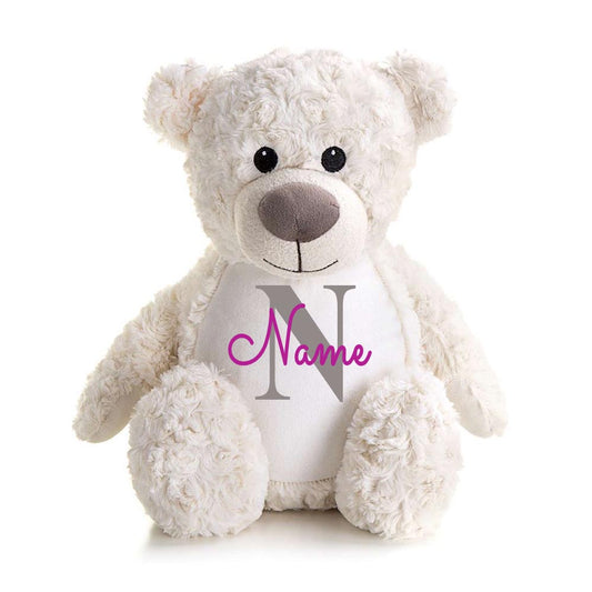 Stofftier Teddybär Creme mit Name personalisiert Kuscheltier für Kinder Flauschiges Plüschtier 40cm Motiv Buchstabe