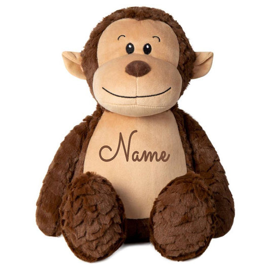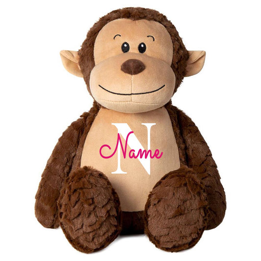 Stofftier AFFE braun mit Name personalisiert Kuscheltier für Kinder Flauschiges Plüschtier 40cm Motiv Buchstabe
