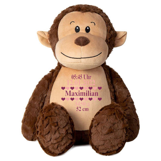 Affe Stofftier mit Name und Geburtsdatum personalisiert Kuscheltier Äffchen