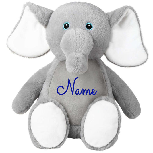Stofftier Elefant grau mit Name personalisiert Kuscheltier für Kinder Flauschiges Plüschtier 40cm Motiv Name