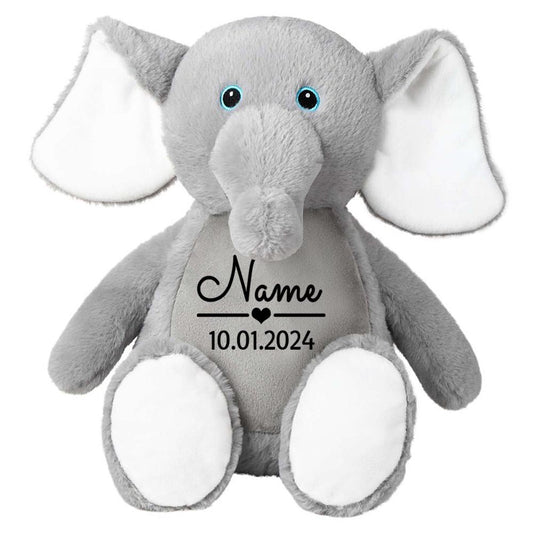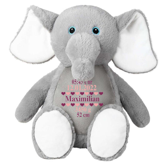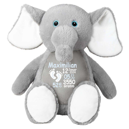 Elefant Stofftier mit Name und Geburtsdatum personalisiert Kuscheltier Geburtsgeschenk