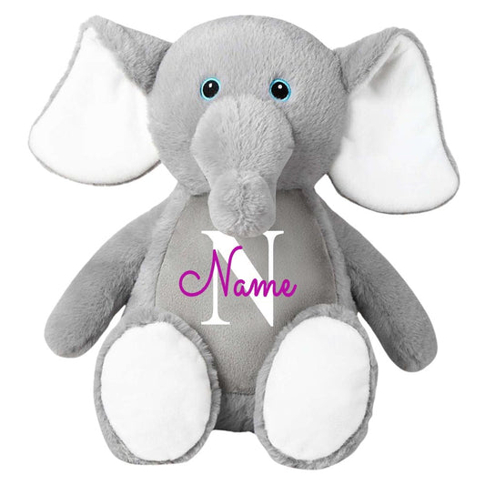 Stofftier Elefant grau mit Name personalisiert Kuscheltier für Kinder Flauschiges Plüschtier 40cm Motiv Buchstabe