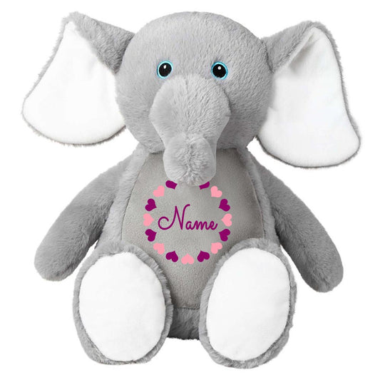 Stofftier Elefant grau mit Name personalisiert Kuscheltier für Kinder Flauschiges Plüschtier 40cm Motiv Herzkreis