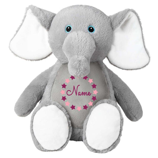 Stofftier Elefant grau mit Name personalisiert Kuscheltier für Kinder Flauschiges Plüschtier 40cm Motiv Sternkreis