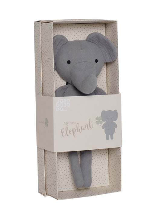 Stofftier aus Musselin mit Name personalisiert in Geschenkverpackung Elefant