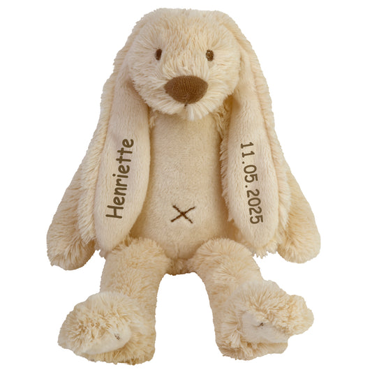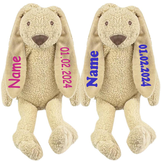 Stofftier Hase mit Namen und Geburtsdatum personalisiert Geschenk beige