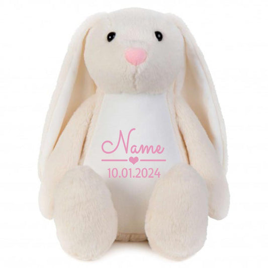 Stofftier Hase mit Namen und Geburtsdatum personalisiert Geschenk weiß