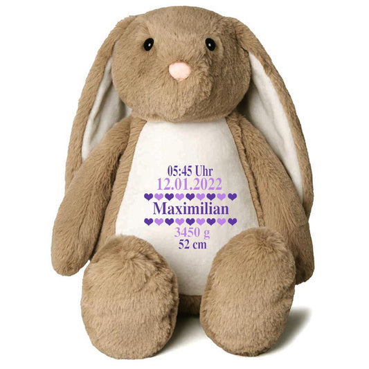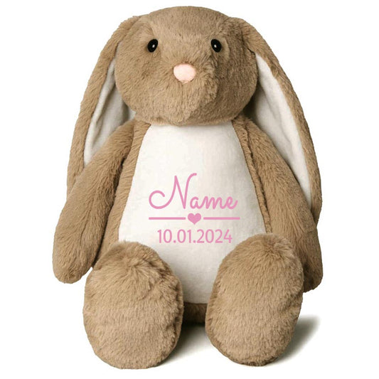 Stofftier Hase Hellbraun mit Name personalisiert Kuscheltier Stoffhase für Kinder Flauschiges Plüschtier 40cm Motiv Name und Datum