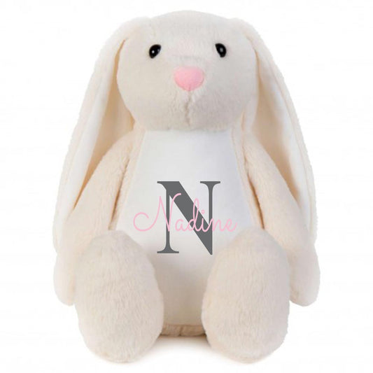 Stofftier Hase beige mit Name personalisiert Kuscheltier Stoffhase für Kinder Flauschiges Plüschtier 40cm Motiv Buchstabe