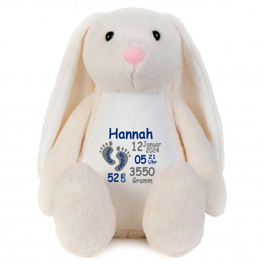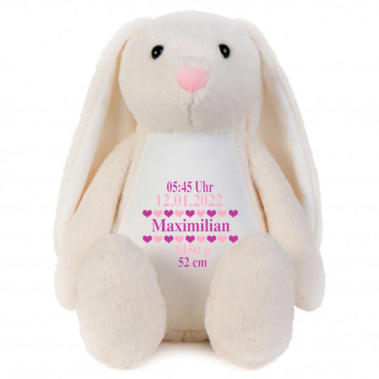 Stofftier Hase beige mit Name personalisiert Kuscheltier Stoffhase für Kinder Flauschiges Plüschtier 40cm Motiv Geburt