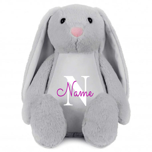 Stofftier Hase Grau mit Name personalisiert Kuscheltier Stoffhase für Kinder Flauschiges Plüschtier 40cm Motiv Buchstabe